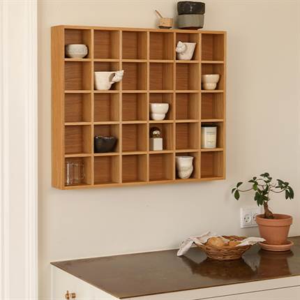 KA33 kopkassen fra Kath & Andersen er en rummelig og funktionel opbevaringsløsning, der kombinerer klassisk håndværk med et enkelt, nordisk udtryk. Den er ideel til organisering af kopper, glas eller andre mindre genstande i køkken eller vitrineskab.