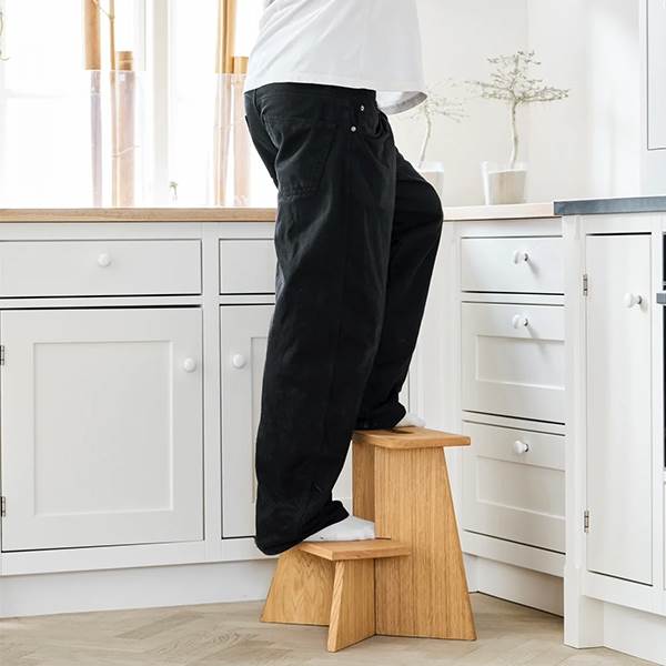 KA54 trappeskamlen fra Kath & Andersen er en praktisk og stilfuld løsning, der kombinerer funktion og æstetik i ét design. Den er ideel som hjælp i hverdagen, når du skal nå de øverste hylder, samtidig med at den fungerer som en dekorativ del af indretningen.