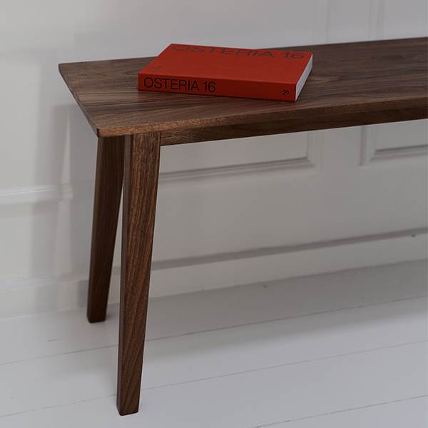 Fremstillet i massivt træ og finér i valnødslook fremstår bænken både robust og stilfuld. Materialerne sikrer god holdbarhed, mens træets struktur tilfører varme og karakter til rummet.