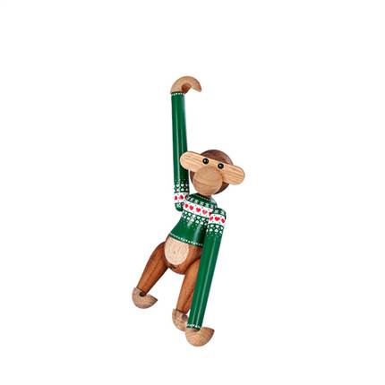 Oplev ægte julemagi i et moderne design med Kay Bojesens ikoniske Abe i en unik juleudgave. Den altid smilende abe er iført en klassisk grøn julesweater, som på smukkeste vis forener historien om Kay Bojesens verdensberømte design med julens hyggelige stemning. Kay Bojesen Abe Julesweater 2025 er fremstillet af FSC®-certificeret teak og fås i både en miniversion på 9,5 cm og i den klassiske lille størrelse på 18,5 cm. Begge udgaver prydes med et traditionelt julemønster, bestående af fine julestjerner og snefnug, som er nøje påført på bryst, mave og skuldre. En fin detalje er det smalle bånd med julerudemønster ved ærmekanterne.