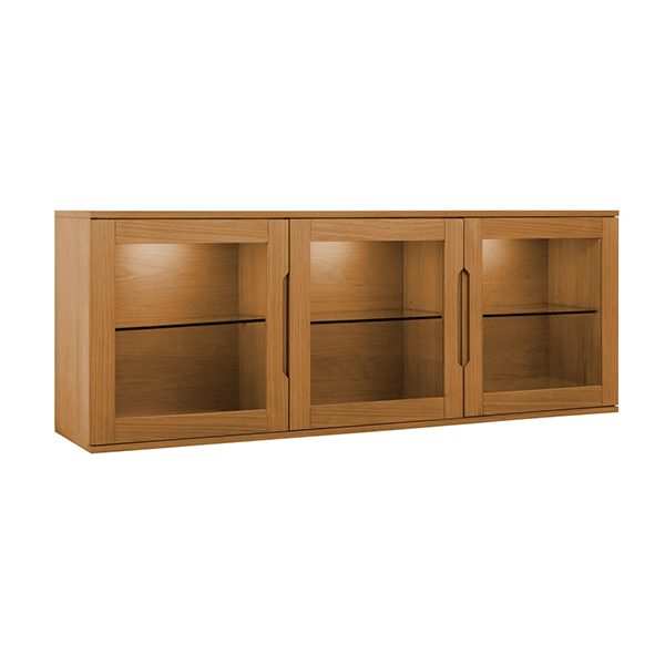 Kerteminde væghængt vitrineskab med 3 sektioner er en elegant og funktionel opbevaringsløsning, der kombinerer egetræsfiner, MDF og massivt træ i et harmonisk design. Den naturlige oliefinish fremhæver træets struktur og giver skabet et varmt og indbydende udtryk.