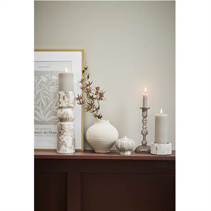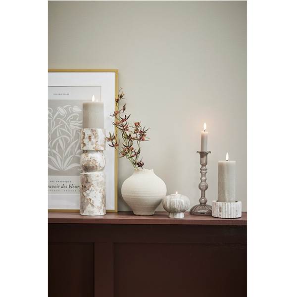 Lysestagen skaber et blødt og stemningsfuldt lys, når den kombineres med dine foretrukne stearinlys. Den er ideel til middagsselskaber, festlige begivenheder eller som et dekorativt element, der tilfører hjemmet både stil og varme.
