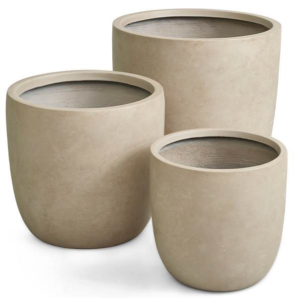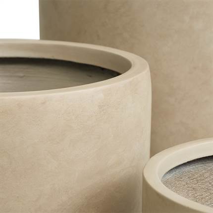 Krukkerne er fremstillet i fiber cement, som er et robust og slidstærkt materiale, der egner sig særligt godt til udendørs brug. Materialet er modstandsdygtigt over for vind og vejr og kræver minimal vedligeholdelse.