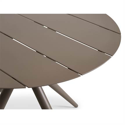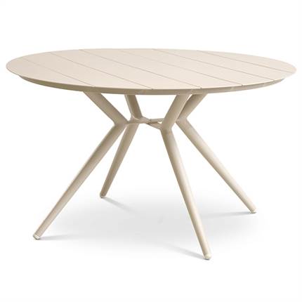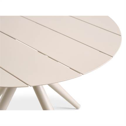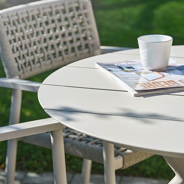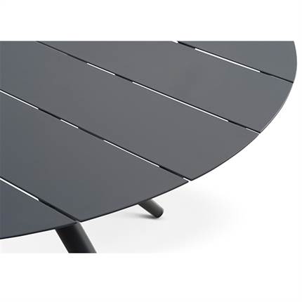 Bordet har en diameter på 126 cm og en højde på 75 cm, hvilket giver god plads til flere personer uden at optage for meget plads i uderummet. Den runde form gør det ideelt til både mindre og mellemstore udendørs områder.
