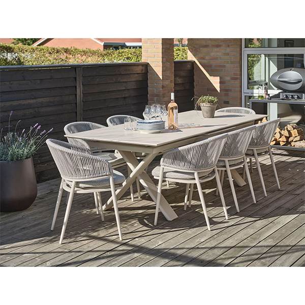 Med Lexpo Elba extension dining table får du et elegant og praktisk spisebord, der gør det let at samle familie og venner til hyggelige måltider under åben himmel.