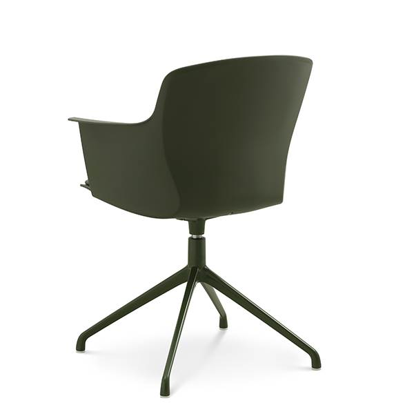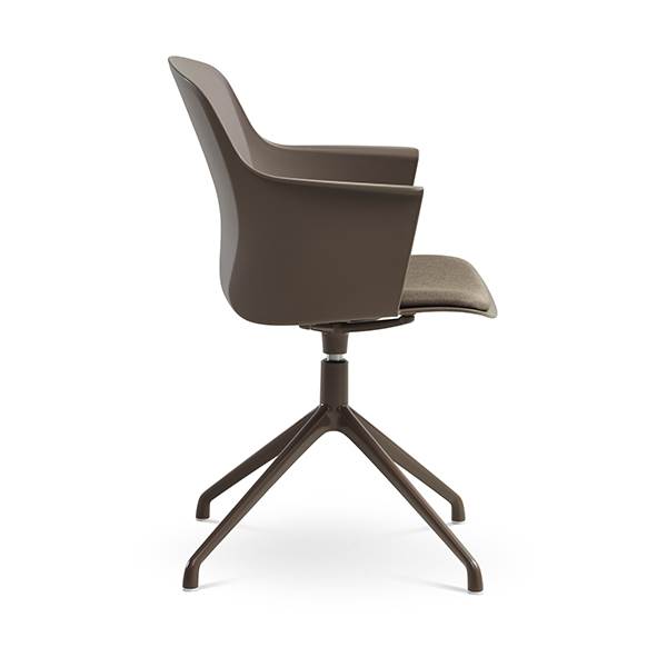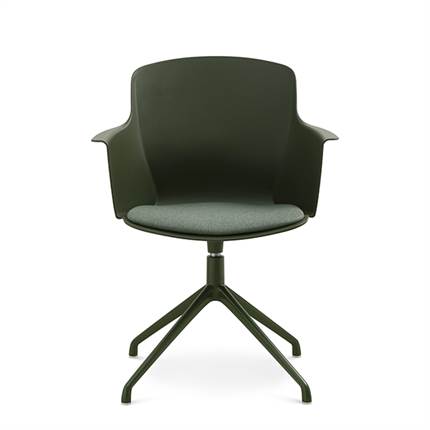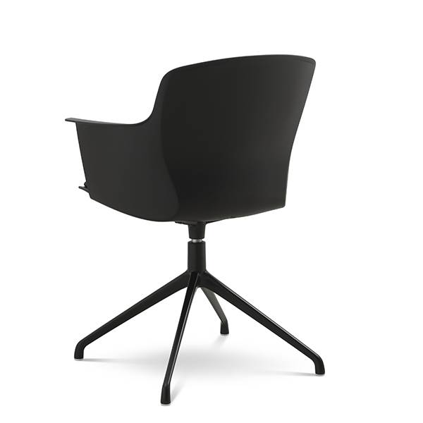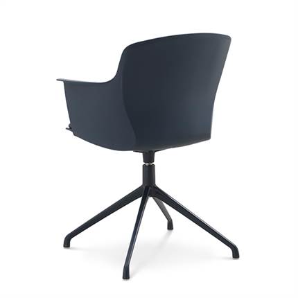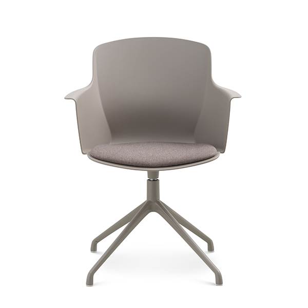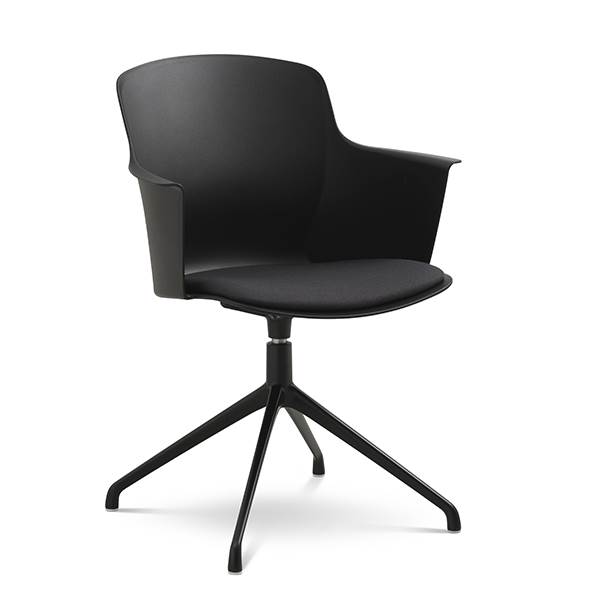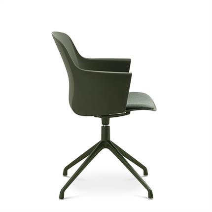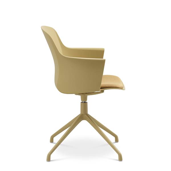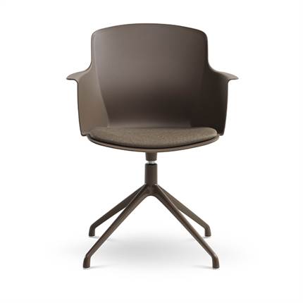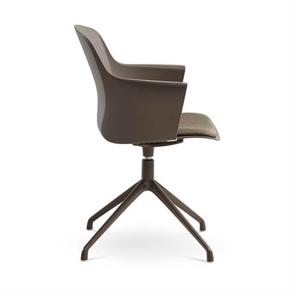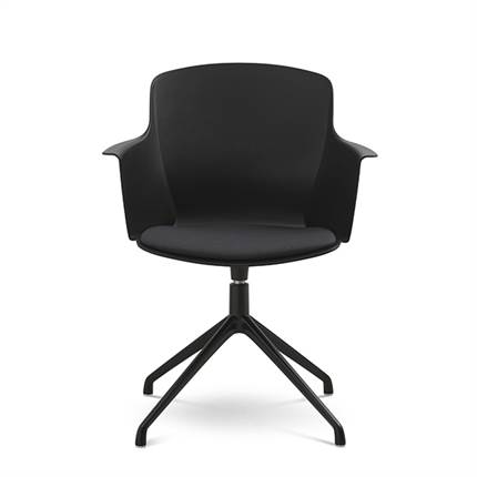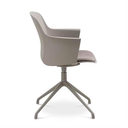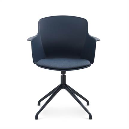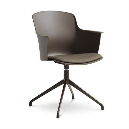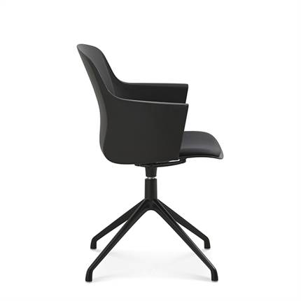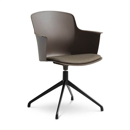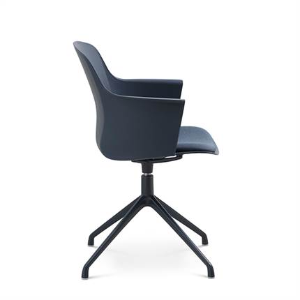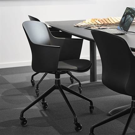 Der er mulighed for at vælge mellem ben med hjul eller ben med svirvel, hvilket gør stolen fleksibel og velegnet til både spiseområde og mødelokale.
