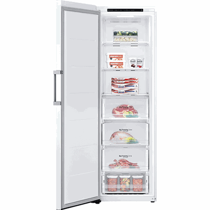 LG GFT41SWGSF er et rummeligt og stilrent fritstående fryseskab, der passer perfekt ind i det moderne køkken. Med en stor kapacitet på 324 liter er der masser af plads til både dagligvarer og større indkøb, hvilket gør fryseren ideel til familier eller dig, der ønsker ekstra opbevaringsplads.