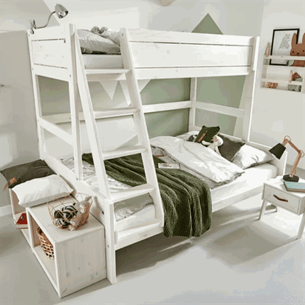 LIFETIME Kidsrooms Familie køjeseng med stige er en smart og fleksibel etagesengsløsning, der giver optimal udnyttelse af pladsen på børneværelset. Køjesengen er ideel, når børnene deler værelse, eller når de bare ønsker at hygge sig sammen ved sengetid. Den kombinerer funktionalitet, komfort og sikkerhed med et tidløst design, der passer til forskellige indretninger.