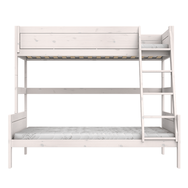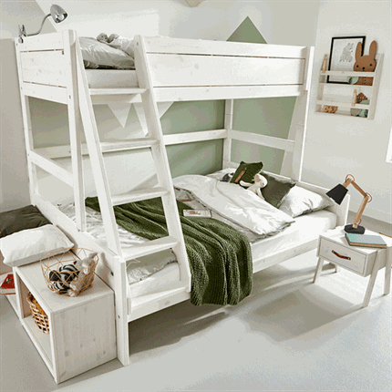 Forside › Soveværelse › Børnesenge LIFETIME Kidsrooms Familie køjeseng med stige 90/140x200 cm På lager Vælg farve Vælg variant EC PRIS 11.863,00 kr. Antal Læg i kurv Gratis fragt over 499 kr. Prisgaranti 10.000 m2 bolighus Udvendige mål L: 207 x B: 152 x H: 177 cm Sovemål 90x200 og 140x200 cm (ikke incl.) Materialer Træ Farve Hvid lak eller hvidpigmenteret lak Inkluderet i prisen Premium lameller Fast lav pris / På lager 1 Varenr.: 467423- LIFETIME Kidsrooms Familie køjeseng med stige pladsbesparende komfort og hygge LIFETIME Kidsrooms Familie køjeseng med stige er en funktionel og fleksibel sengeløsning, der er ideel til børneværelset, hvor pladsen skal udnyttes optimalt. Køjesengen er perfekt, når børnene deler værelse – eller når de blot nyder trygheden og hyggen ved at sove sammen. Kombinationen af en enkeltseng i størrelsen 90x200 cm og en rummelig underkøje på 140x200 cm giver ekstra komfort og fleksibilitet. Den større underkøje gør sengen velegnet til både børn, teenagere og hyggelige overnatninger med venner. Den medfølgende stige sikrer nem og sikker adgang til den øverste seng uden at optage unødig gulvplads. Med sit tidløse design og robuste konstruktion er familie køjesengen en langtidsholdbar løsning, der skaber trygge rammer for både søvn, leg og fælles stunder. Samtidig frigør den værdifuld gulvplads, som kan bruges til leg, opbevaring eller kreative aktiviteter. Familie køjeseng med stige – smart og pladsbesparende Sovepladser i 90 × 200 cm og 140 × 200 cm Ideel til delte børneværelser eller hyggeligt samvær Sikker og nem adgang til øverste seng via stige Robust konstruktion og tidløst design Giver mere gulvplads til leg og opbevaring Inkluderer Premium lameller Har du brug for hjælp? Kontakt vores kundeservice på: 98 93 61 55kundeservice@ecmh.dk Køb mere - Spar mere Skal du handle stort ind? Så send os en uforpligtet forespørgsel Udfyld formular