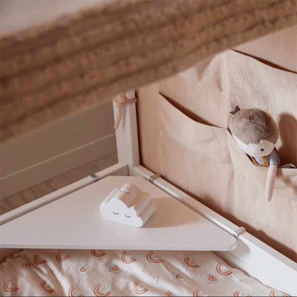Hylden giver barnet nem adgang til bøger, bamser, legetøj eller nattens vigtigste ting. Den skaber orden omkring sengen og gør det let at holde børneværelset ryddeligt.
