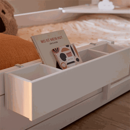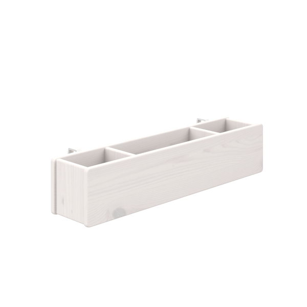 Forside › Soveværelse › Sengetilbehør LIFETIME Kidsrooms Opbevaringskasse til seng og væg På lager Vælg farve Vælg variant EC PRIS 890,00 kr. Antal Læg i kurv Gratis fragt over 499 kr. Prisgaranti 10.000 m2 bolighus Længde - cm: 70 Højde - cm: 15 Bredde - cm: 15 Farve: Hvid lak, hvidpigmenteret lak eller grå Materiale: Træ Fast lav pris / På lager 1 Varenr.: 163- LIFETIME Kidsrooms Opbevaringskasse LIFETIME Kidsrooms opbevaringskasse er et funktionelt og alsidigt tilbehør, der gør hverdagen nemmere på børneværelset. Den fungerer særligt godt til LIFETIME’s højere senge, men er et oplagt supplement til alle LIFETIME-senge, hvor barnet har brug for at have sine mest anvendte ting lige i nærheden. Opbevaringskassen er opdelt i tre rum, hvilket giver plads til bøger, legetøj, en natlampe eller et glas vand – alt sammen inden for barnets rækkevidde. Det understøtter barnets selvstændighed og gør det let selv at holde orden omkring sengen. Kassen kan både monteres direkte på sengen eller hænges på væggen, da den er forberedt til begge dele. Det giver stor fleksibilitet i indretningen og gør det nemt at tilpasse løsningen, efterhånden som barnets behov ændrer sig. Praktisk opbevaringskasse til seng og væg Særligt velegnet til højere senge, men passer til alle LIFETIME-senge Opdelt i tre rum til bøger, legetøj eller glas vand Holder barnets vigtigste ting lige ved hånden Kan monteres på sengen eller hænges på væggen Fleksibel og pladsbesparende opbevaringsløsning Ideelt tilbehør til et funktionelt og organiseret børneværelse Har du brug for hjælp? Kontakt vores kundeservice på: 98 93 61 55kundeservice@ecmh.dk Køb mere - Spar mere Skal du handle stort ind? Så send os en uforpligtet forespørgsel Udfyld formular