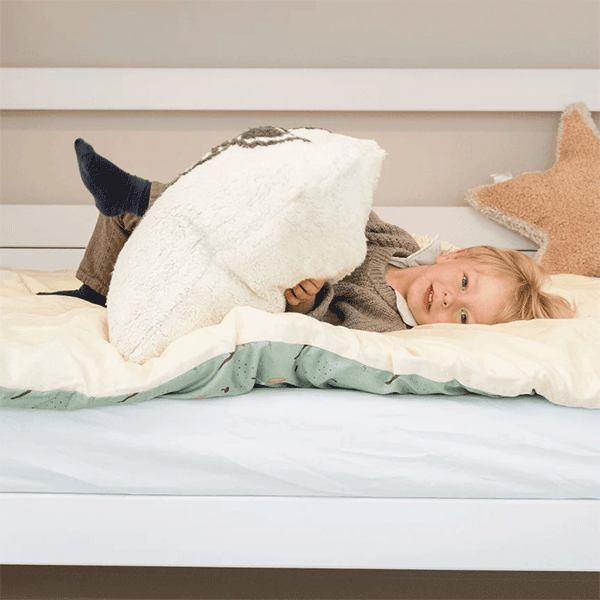 Det bløde bomuldsmateriale føles behageligt mod huden og sikrer, at barnet kan sove trygt og komfortabelt – uden at gå på kompromis med funktionaliteten.