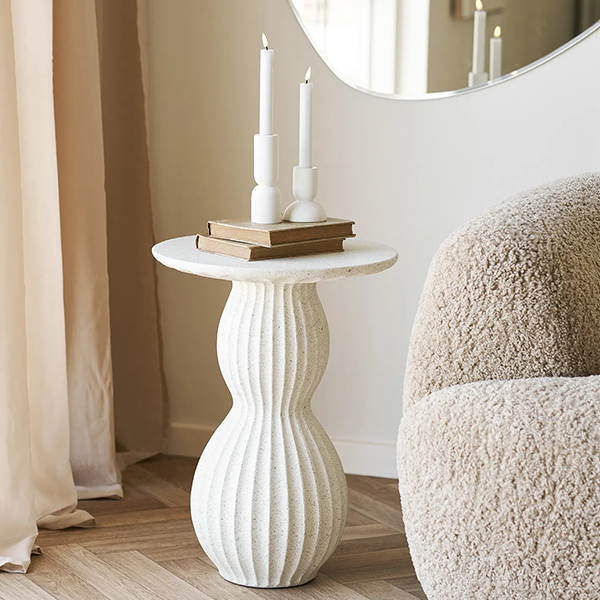 Newtown hjørnebord i hvid kombinerer enkelt, tidløst design med funktionel brug i hjemmet. Med mål på 40 x 40 x 55 cm passer bordet perfekt ind i hjørner, ved sofaen eller som sidebord, hvor det kan skabe et stilfuldt og praktisk overfladeområde uden at fylde for meget. Bordpladen og stellet er fremstillet i fiberclay, som giver en skulpturel og holdbar kvalitet med et rent finish, samtidig med at bordet forbliver let og nemt at flytte. Det kan bære op til 5 kg, hvilket gør det ideelt til dekoration, lamper eller små opbevaringsløsninger. Newtown leveres samlet, klar til brug med det samme, og det minimalistiske design gør det nemt at integrere i både moderne og klassiske boligmiljøer. Bordet er et oplagt valg til dig, der ønsker et funktionelt og dekorativt møbel med et let og elegant udtryk.