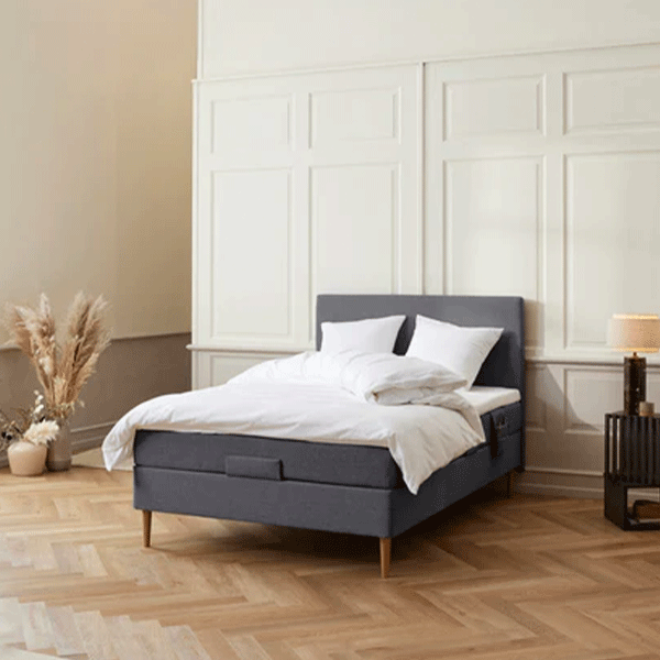 Denne Nordfjord elevationsseng har en elevationsbund med 27 trælameller og er udstyret med en dansk kvalitetsmotor fra Linak som kan styres vha. den trådløse fjernbetjening som følger med eller via App-styring fra din smartphone. Derudover har elevationsbunden nakkevip hvilket gør det endnu mere komfortabelt at benytte elevationen hvis du eksempelvis vil læse i sengen. Madrassen har 7 individuelle komfortzoner for at give dig den bedste støtte og komfort, madrassen er polstret med latex for at give en god åndbarhed, derudover er madrassen betrukket med slidtstærkt møbelstof, hvorpå der på liggefladen er påført antiskrid for at sikre at topmadrassen ikke glider rundt når elevationen benyttes.