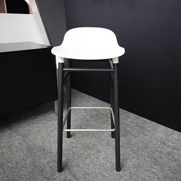 Form barstolen fra Norman Copenhagen kombinerer minimalistisk skandinavisk design med funktionalitet og komfort. Stolen har et hvidt sæde i slidstærkt polypropylene (PP) og sorte egetræsben, hvilket giver et stilrent og tidløst udtryk. Den integrerede fodstøtte sikrer komfort, selv når du sidder i længere tid, og den høje sædehøjde på 65 cm gør den perfekt til brug omkring køkkenøen, baren eller højborde.