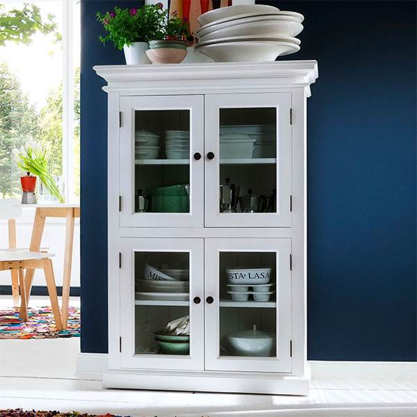 Halifax-skabet forener klassisk elegance med tidløs funktionalitet. Med sine fire glasdøre giver skabet et let og indbydende udtryk, samtidig med at det tilbyder praktisk opbevaring og mulighed for at fremvise dit fineste porcelæn, glas eller dekorationer.
