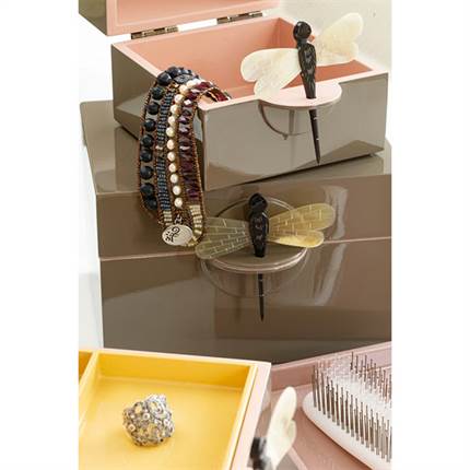 Lakæsken inkluderer en praktisk indvendig bakke, som gør den ideel til opbevaring af smykker eller små genstande. Denne funktion gør det muligt at organisere dine ejendele på en både stilfuld og funktionel måde.