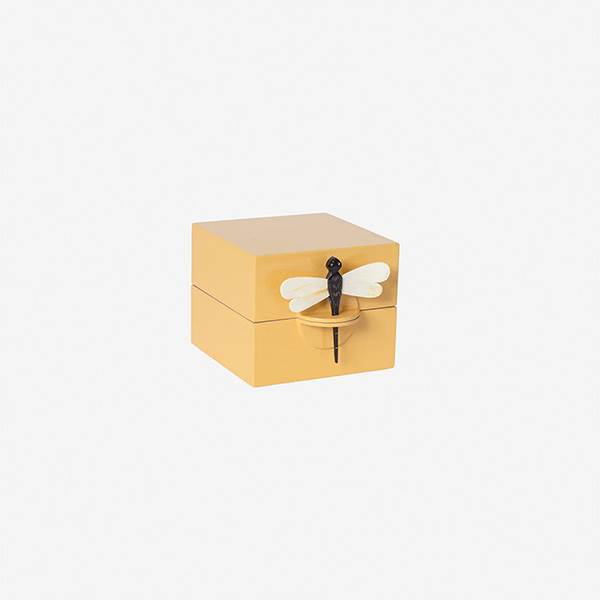 Oi Soi Oi Lakkasse S i farven "Sun" er en kompakt opbevaringskasse med målene 12 cm i bredde, 10 cm i højde og 12 cm i dybde. Kassen er fremstillet af MDF træ og er belagt med 13-15 lag lak, hvilket giver den en skinnende og holdbar overflade. Den udvendige "Sun" farve giver et energisk og levende udtryk, mens den indvendige "Powder" farve tilføjer en varme.