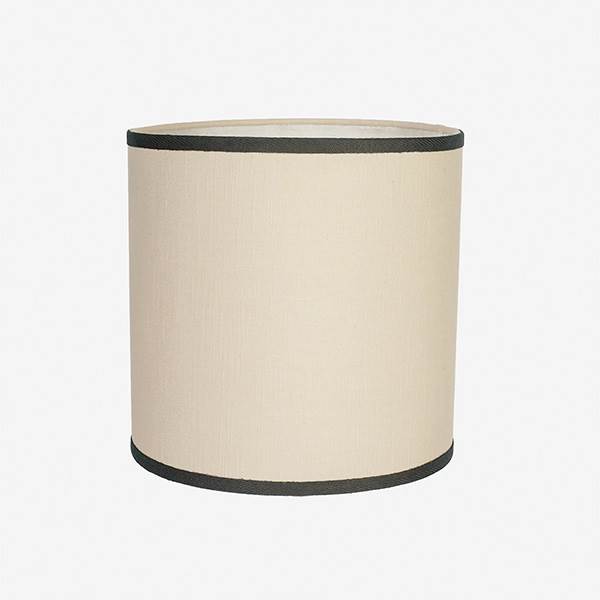 Lampeskæm i en lys sand og med et bomuldsbånd i cola. Oi Soi Oi's lampeskærme er alle fremstillet af naturlige materialer, hovedsageligt 100% silke. Samtlige skærme er håndlavede. Oi Soi Oi's kollektion omfatter både loftslamper og lampeskærme til lampefødder.