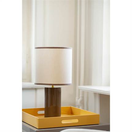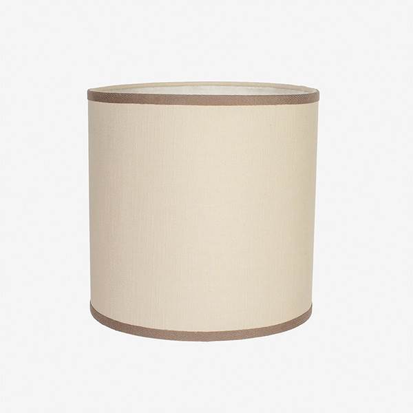 Lampeskæm i en lys sand og med et bomuldsbånd i earth. Oi Soi Oi's lampeskærme er alle fremstillet af naturlige materialer, hovedsageligt 100% silke. Samtlige skærme er håndlavede. Oi Soi Oi's kollektion omfatter både loftslamper og lampeskærme til lampefødder.