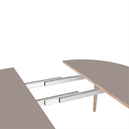 Bordet måler Ø122 x H75 cm og kan udvides med op til fire tillægsplader. Længde ved to tillægsplader: 222 cm. Længde ved fire tillægsplader: 322 cm. Tillægsplader medfølger ikke.