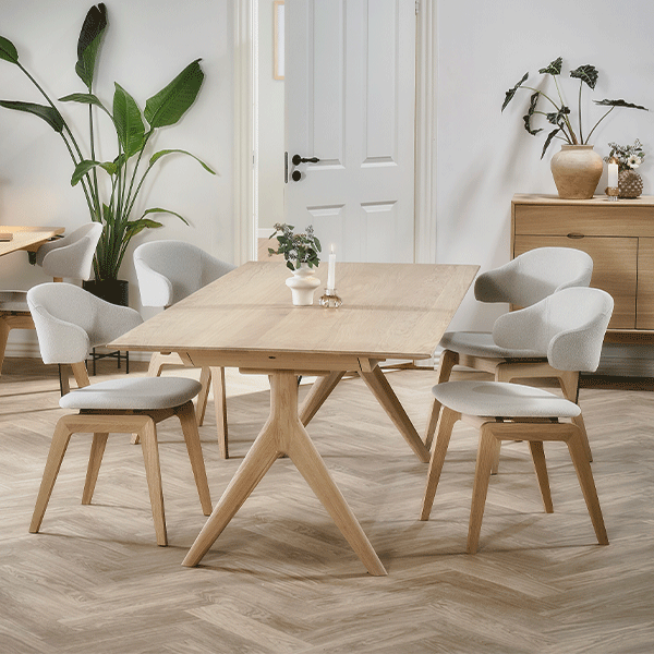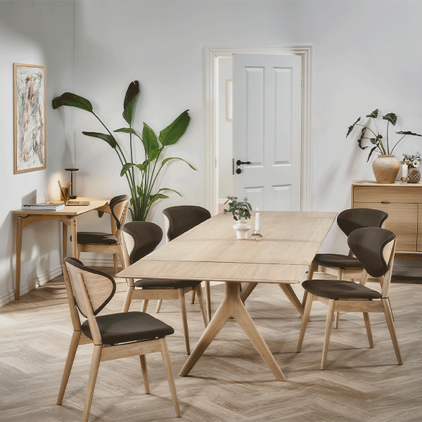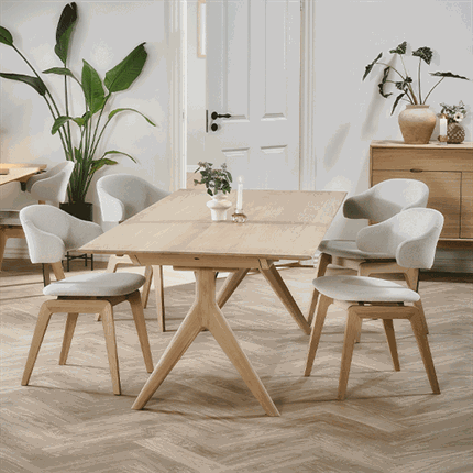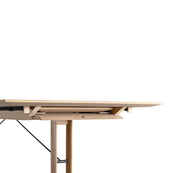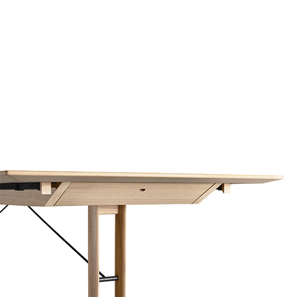 Bordet er ideelt til både hverdagsbrug og større middage, da det kan udvides med én tillægsplade i hver ende. Det giver fleksibilitet, når der kommer gæster, uden at gå på kompromis med det æstetiske udtryk i dagligdagen.