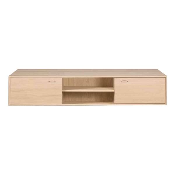 Reolen er designet til vægmontering, men kan også leveres med ben, hvis du ønsker en fritstående løsning.