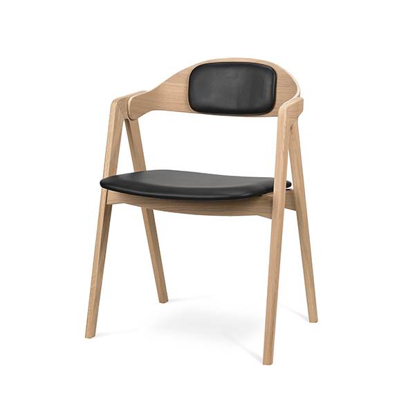 Stolen fås med Madras læder på både sæde og ryglæn i farverne cognac eller sort. Begge farver tilfører et eksklusivt og tidløst look, der gør stolen nem at integrere i både moderne og klassiske indretninger. En smuk og funktionel spisebordsstol, der forener æstetik og komfort.
