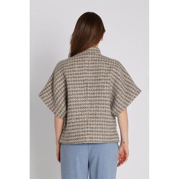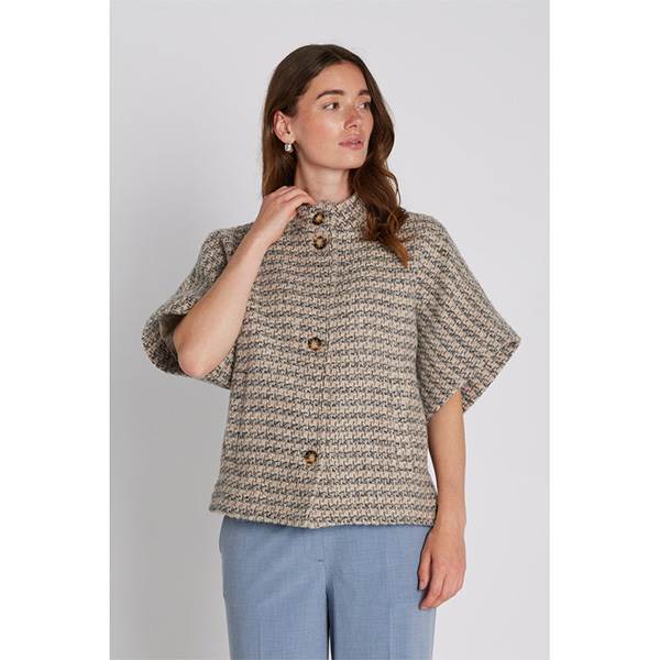 Bengala-capen har et sofistikeret design med en kort, boxy silhuet og stående krave. Fremstillet i blødt, tekstureret materiale med skrå paspolerede lommer og knaplukning foran. Den er fuldt foret for et raffineret og komfortabelt udtryk.