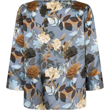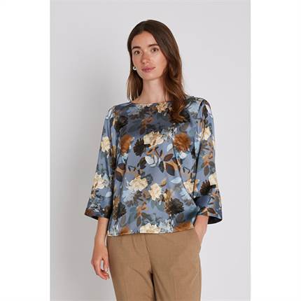 Etta-blusen er en feminin model med en flatterende, lige pasform og 3/4-lange ærmer med brede manchetter. Den runde halsudskæring afsluttes bagpå med en lille slids og knaplukning, hvilket tilfører et elegant touch.