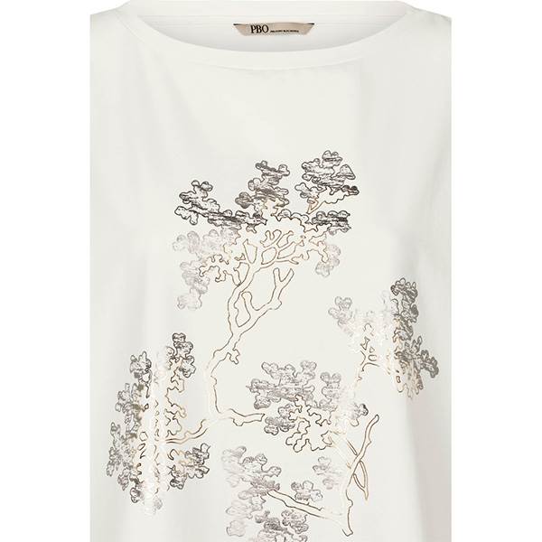Japa er en klassisk T-shirt med afslappet pasform og et dekorativt, skinnende print på fronten, der tilfører et kunstnerisk udtryk.