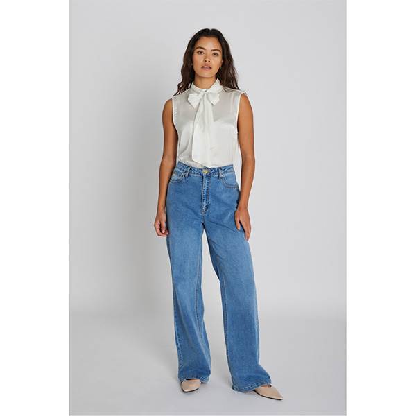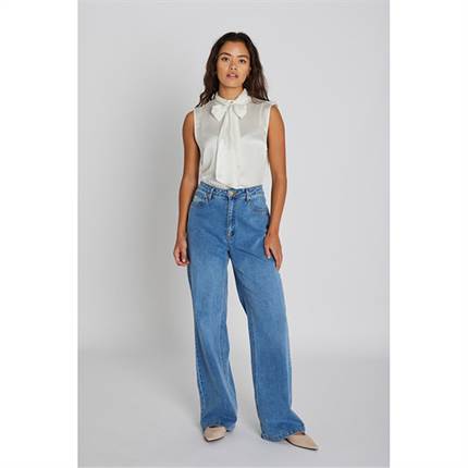 Lia-jeansene er fremstillet i en blåvasket denim med en løs, lige pasform og høj talje. Modellen har et klassisk femlomme-design og udgør et komfortabelt og tidløst valg til hverdagsbrug.