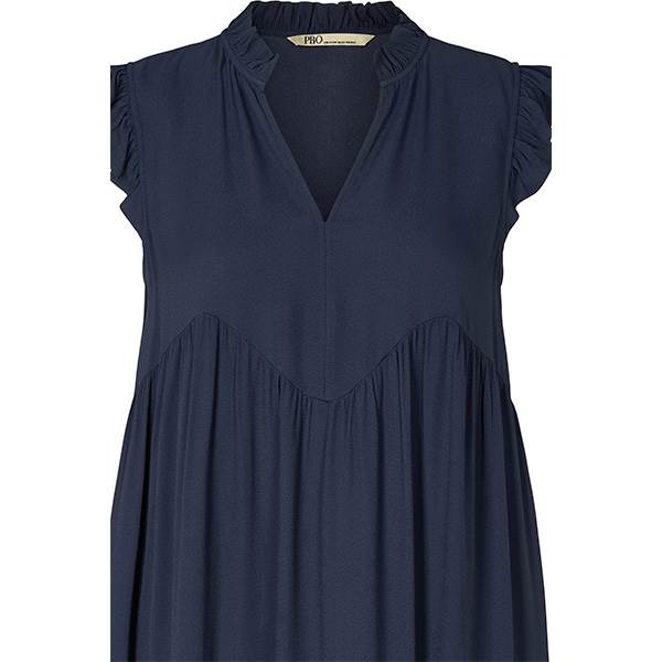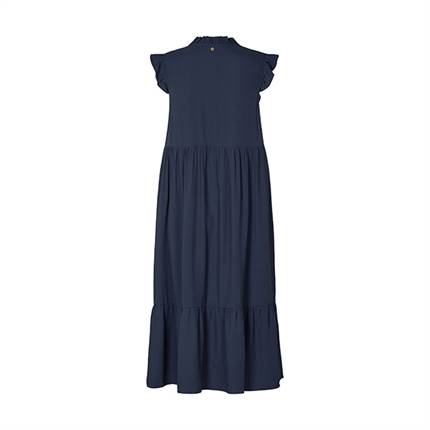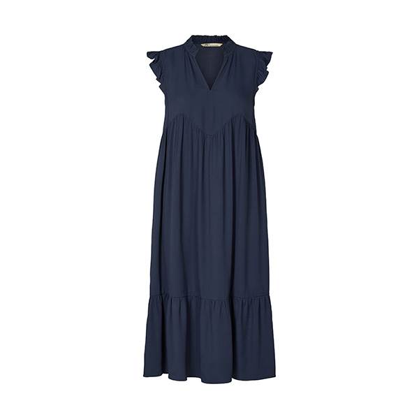Linden-kjolen er en feminin og ubesværet midikjole med et let og flydende udtryk. Kjolen er designet med V-udskæring og en blød, rynket krave, hvilket skaber en elegant silhuet, mens de fine flæsedetaljer ved ærmerne tilfører et romantisk præg. Den løse pasform samt de rynkede paneler giver kjolen smuk bevægelse og et graciøst fald.
