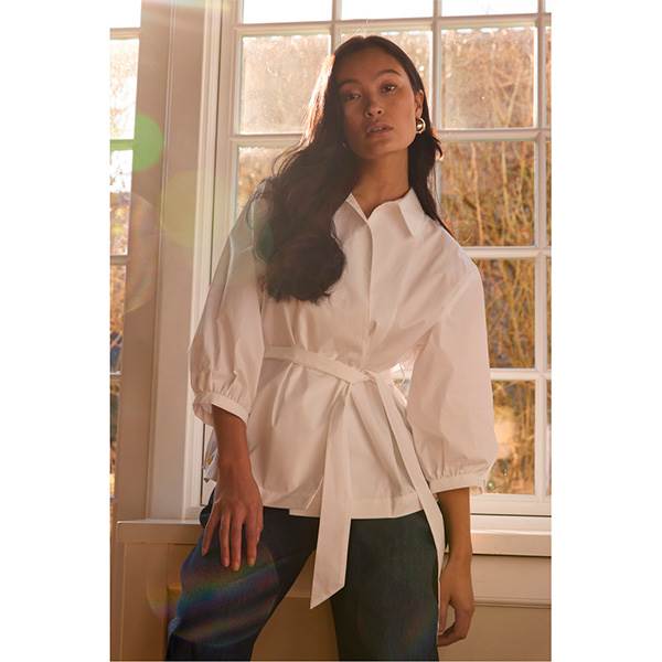 Style den med højtaljede bukser for et moderne og veldefineret udtryk eller med en nederdel for et tidløst og feminint look.