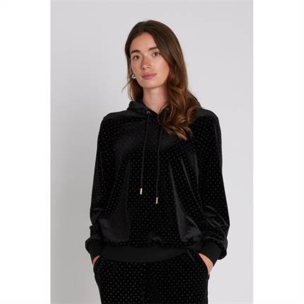 Marlip-sweatshirten har en afslappet pasform med hætte, ribkanter og dekorative prikkede detaljer over hele stoffet. En sporty, men samtidig elegant fortolkning af den klassiske hættetrøje.