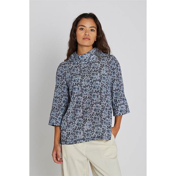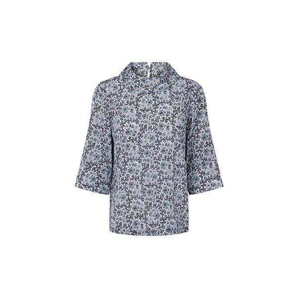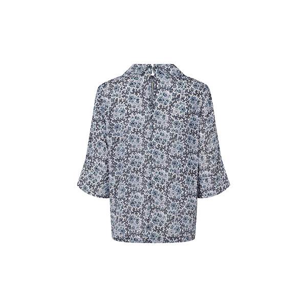 Menito er en let bluse med afslappet pasform, trekvartlange ærmer og V-udskæring, hvilket skaber et ubesværet og feminint udtryk.