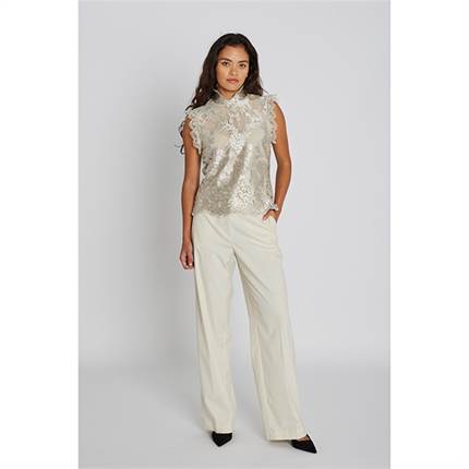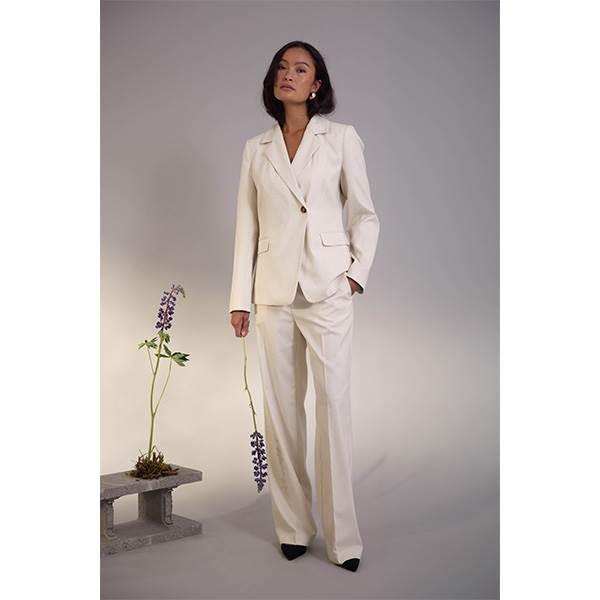 Bukserne kan med fordel styles med en skjorte og blazer for et professionelt look, eller kombineres med en blød striktrøje for et afslappet og stilfuldt hverdagsudtryk.