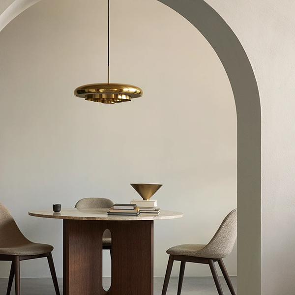 Resonant lampen fra Audo Copenhagen, designet i 1950’erne af Alf Svensson & Yngvar Sandström, er et ikonisk eksempel på mid-century modern design, der stadig føles moderne og relevant i dag. Den smukke pendel er udført i poleret messing og består af fire koncentriske skærme, som er designet til at lede lyset blændfrit nedad og skabe en behagelig, harmonisk belysning.