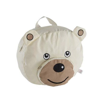 Dynen kommer i en taske formet som en bamse. Denne taske kan også bruges som en rygsæk.