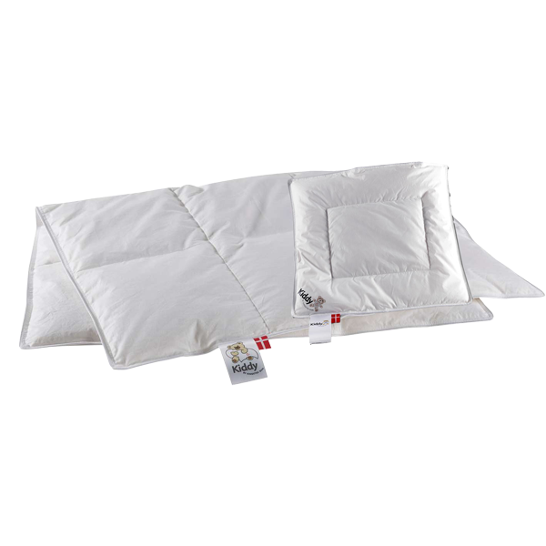 Kiddy dyne- og pudesæt fra Ringsted Dun er et eksklusivt juniorsæt, skabt med fokus på komfort, kvalitet og dansk håndværk. Sættet består af en blød og lun dyne samt en støttende pude, som begge er fremstillet med et vår i 100% bomuld og fyld af nøje udvalgte dun og fjer i klasse 1 kvalitet. Denne kombination giver en let, luftig og varm fornemmelse, der sikrer en behagelig søvn – både indendørs og udendørs. Kan derfor også bruges til barnevognen. Dynen er kategoriseret som ekstra varm.
