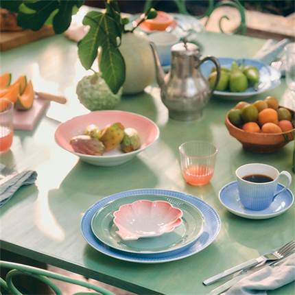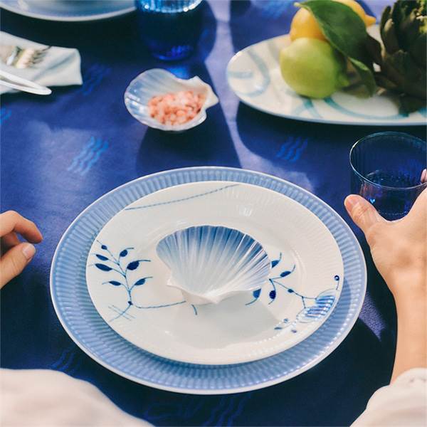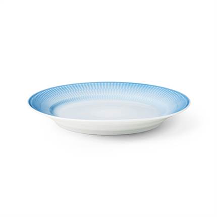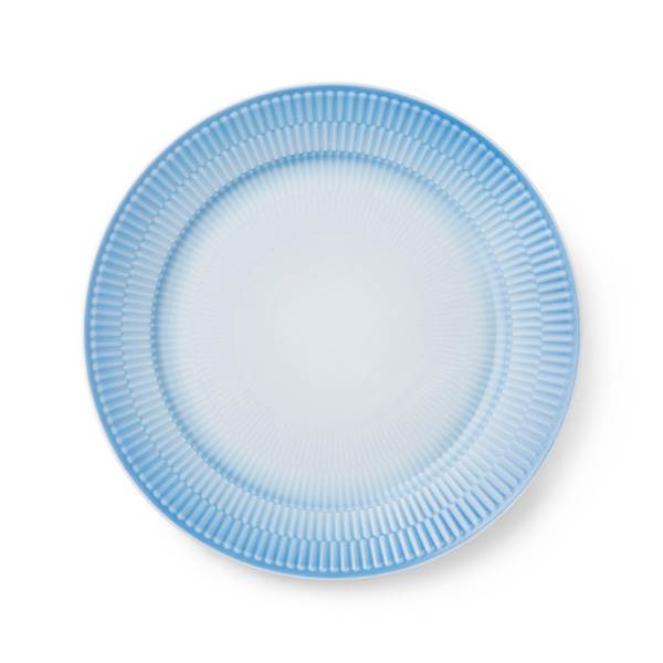 Den store Iris-tallerken på 27 cm er udført med håndlavede rifler og en spraymalet blå glasur, som blidt toner ud mod midten og skaber en elegant baggrund for enhver servering. Tallerkenen kan med fordel kombineres med andre tallerkener fra Royal Copenhagen for at opnå et personligt udtryk, eller indgå i en mere legende og farverig borddækning sammen med øvrige dele fra Iris-kollektionen. Samtlige dele i Iris-kollektionen er håndsprøjtemalede, hvilket medfører, at hvert enkelt stykke porcelæn er unikt.