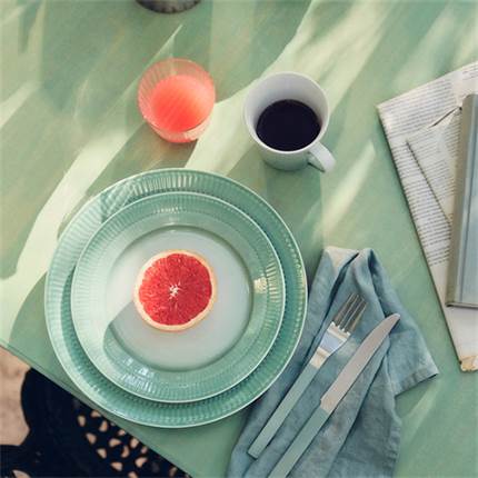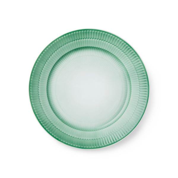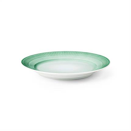 Med en diameter på 22 cm er Iris-tallerkenen særdeles velegnet til lettere anretninger. De håndlavede rifler samt den spraymalede grøn glasur, der blidt toner ud mod midten, tilfører tallerkenen et harmonisk og sanseligt udtryk. Den kan med fordel kombineres med andre stel fra Royal Copenhagen eller med forskellige farver fra Iris-kollektionen for at skabe en borddækning præget af personlighed og legende elegance. Samtlige dele i Iris-kollektionen er håndsprøjtemalede, hvilket indebærer, at hvert enkelt stykke porcelæn er unikt.