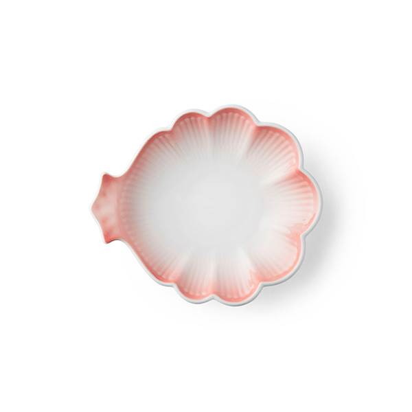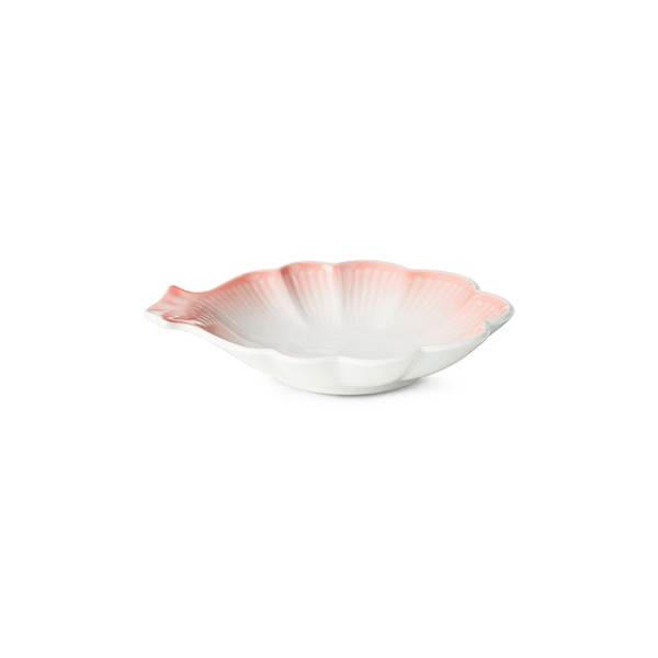 Formet som en blomst i fuldt flor fremstår denne lille skål med et let og poetisk udtryk. Den koralfarvede glasur er påført ved håndsprøjtning og toner blidt mod midten, hvilket fremhæver porcelænets fine reliefarbejde. Skålen egner sig elegant til servering af mindre anretninger eller som en dekorativ detalje i hjemmet. Samtlige elementer i Iris-kollektionen er håndsprøjtede, hvilket gør hvert enkelt porcelænsstykke unikt.