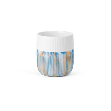 Dette enkle og stilfulde krus præsenteres i en frisk blå nuance. De karakteristiske, håndskårne rifler fortsætter elegant ned i den bløde silikone, hvilket skaber et harmonisk og balanceret udtryk. Kruset egner sig ideelt til både te og kaffe. Serien Riflet Contrast Marble er inspireret af universets farver, og de unikke marmorerede mønstre gør hvert enkelt krus til et særegent og individuelt designobjekt.