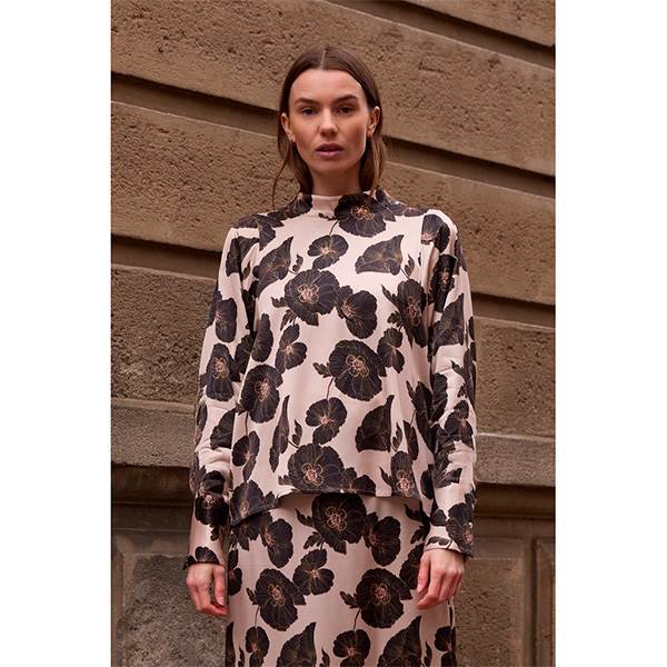 Torina-blusen er en forfinet bluse med flagærmer og en elegant høj krave, der skaber et feminint og sofistikeret udtryk.