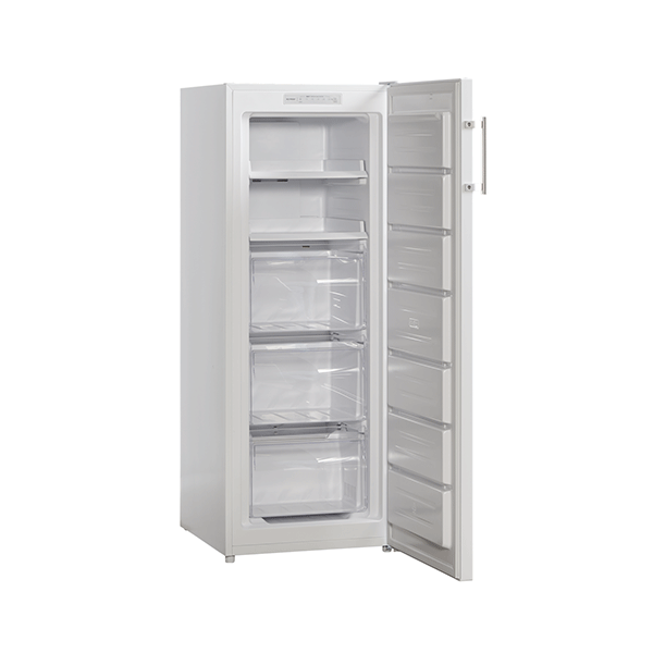 Scandomestic FRF161NFWE er et moderne fryseskab med en bruttokapacitet på 179 liter, der kombinerer høj funktionalitet med brugervenlig teknologi. Med NoFrost-teknologi slipper du helt for manuel afrimning, mens Super freeze-funktionen sikrer hurtig nedfrysning af nye varer. Fryseskabet kan placeres i tørre rum ved temperaturer helt ned til -15°C, hvilket gør det ekstra fleksibelt. Den vendbare dør med rustfrit stålhåndtag samt de 3 skuffer og 2 bakker giver både praktisk opbevaring og nem adgang til indholdet.