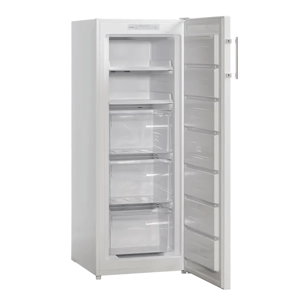 Scandomestic FRF161NFWE er et praktisk og driftssikkert fryseskab med god kapacitet og moderne funktioner, der gør hverdagen lettere. Med 179 liters bruttovolumen får du rigelig plads til frosne varer, fordelt i 3 fryseskuffer med let udtræk og 2 åbne bakker for ekstra overblik.