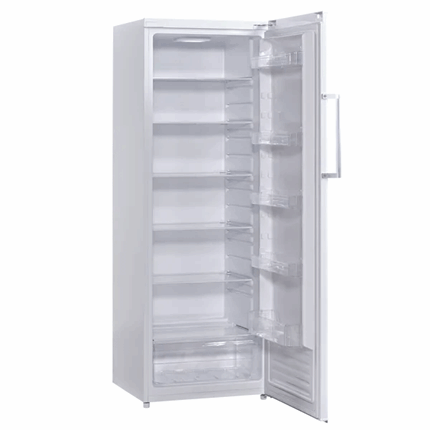 Scandomestic SKS332WE er et stilrent og rummeligt køleskab med en kapacitet på 331 liter, perfekt til den moderne husholdning. Skabet er udstyret med energibesparende LED-belysning, en stor gennemsigtig grøntsagsskuffe og justerbare glashylder med bremsesikring, så du får både fleksibilitet og sikkerhed i indretningen.