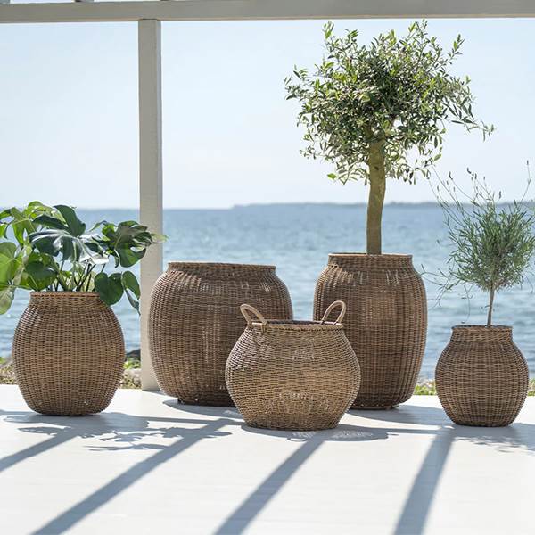 Med sine mål på 77 × 77 cm og en højde på 69 cm giver den god og rummelig opbevaringsplads og fungerer perfekt til opbevaring af hynder, tæpper eller som dekorativ plantekurv. Kurven vejer 7,43 kg, hvilket gør den stabil, men stadig nem at flytte efter behov. Det tidløse og rolige design gør den let at integrere i både moderne og klassiske uderum.