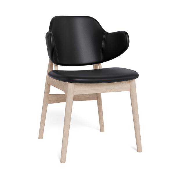 Sive spisebordsstol - sort læder / hvidolieret eg